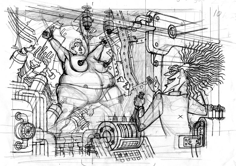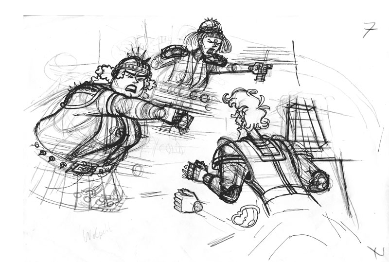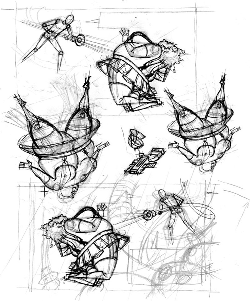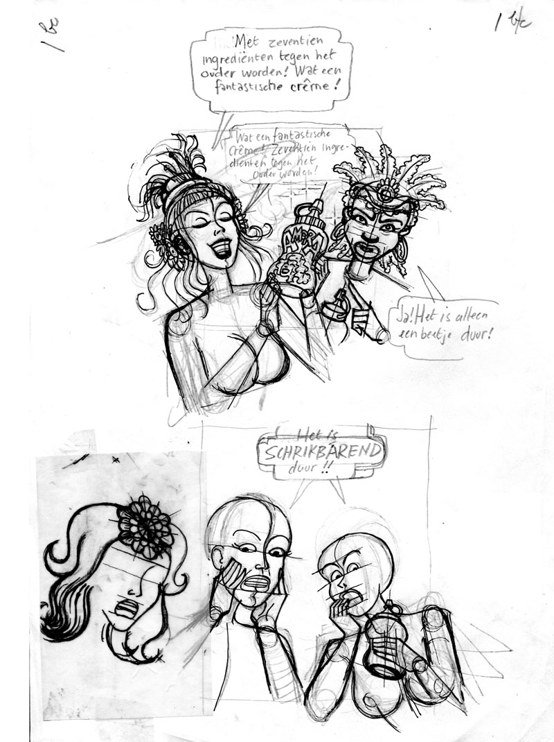 Een kort verhaal (10 pagina's) naar een scenario van Herman Roozen (door de tekenaar licht gewijzigd). Op deze pagina een selectie uit de schetsen. |