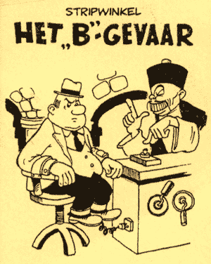 Deze illustratie werd gemaakt voor Eric Deneyer van stripwinkel Het "B" Gevaar. Eric heeft een reeks varianten op zijn logo laten maken door verschillende tekenaars.