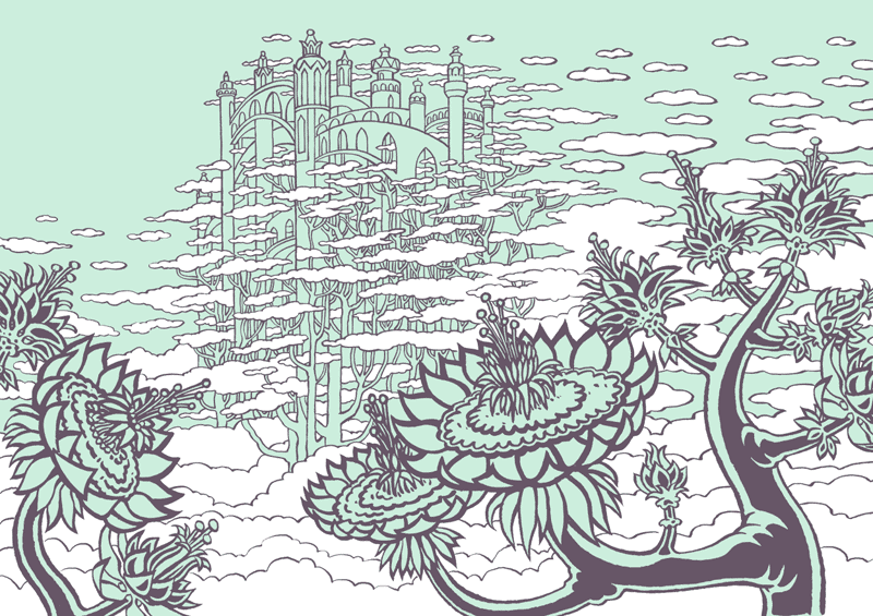 daarna op klassieke wijze in lagen ingekleurd met achtereenvolgens aquarelverf, pastelpotlood en plakkaatverf.